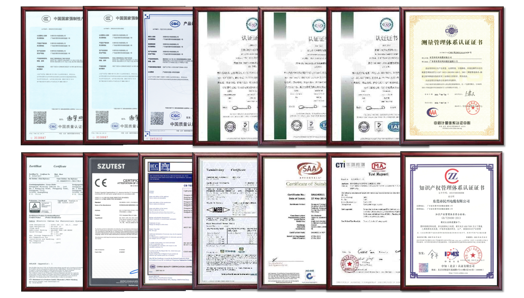 六合联盟坚持自主研发,重视质量管理和售后服务体系建设,经过多年的努力和不断改进,建立了一套科学规范、资质认证齐全的质量管控体系和售后服务系统,为打造高品质线缆奠定坚实基础。拥有:ISO质量管理体系认证、国家CCC认证、中国质量认证中心CQC认证、国际IEC认证、欧盟CE认证、澳大利亚SAA认证、德国莱茵TUV认证、欧盟RoHS环保检测认证等;建立严格完善的来料检测系统,严苛甄选原材料,从源头上保证产品的高端品质;启用QMS质量管理系统、全自动化机械手臂等,实现智能化、精细化、标准化生产,提高生产制造质量水平。